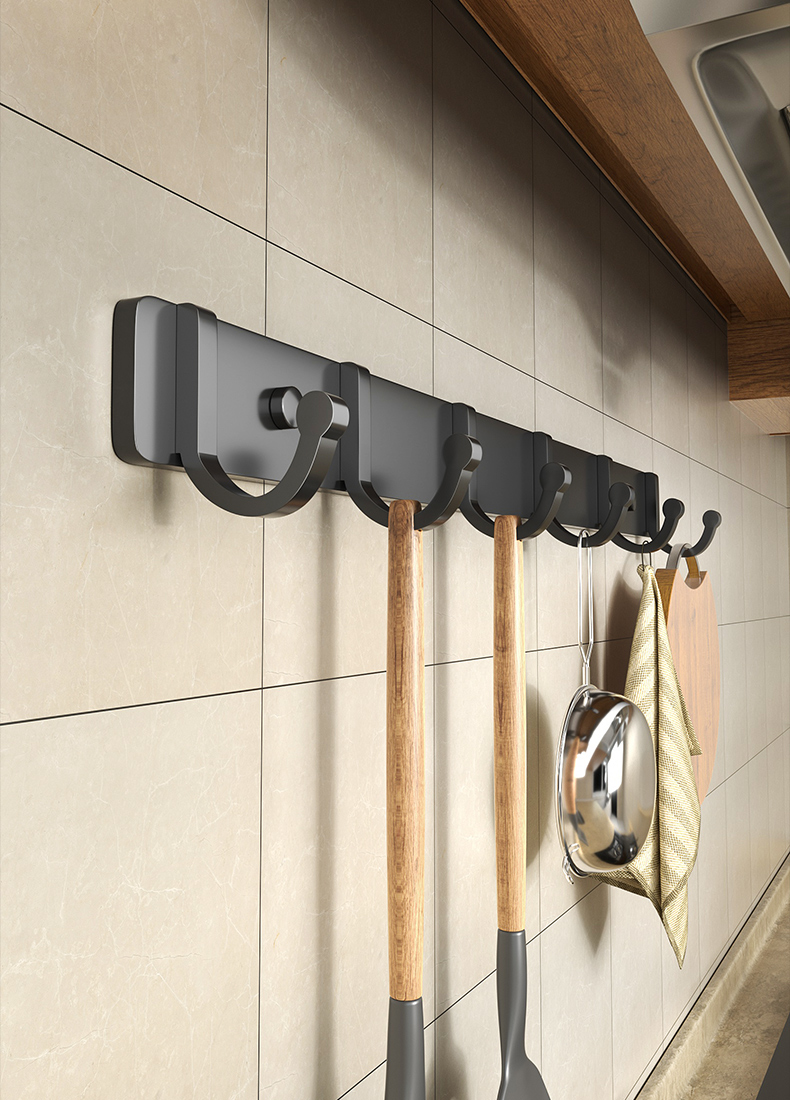 免打孔厨房挂钩架壁挂式抹布沥水架多功能锅铲勺子用品大全收纳架的描述