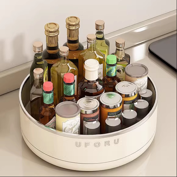 优勤奶油风旋转调料置物架厨房台面多功能调味料收纳用品家用大全