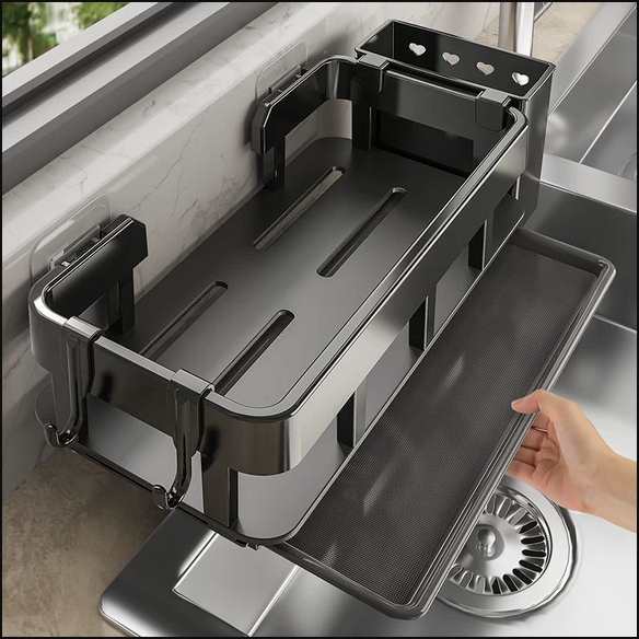 厨房置物架免打孔抹布海绵沥水收纳多功能壁挂调料架家用水槽神器