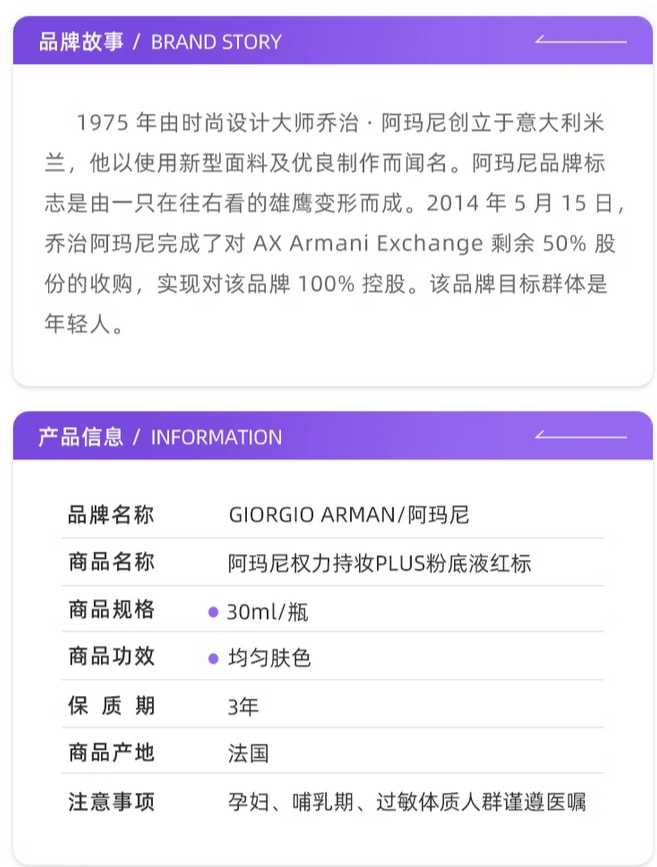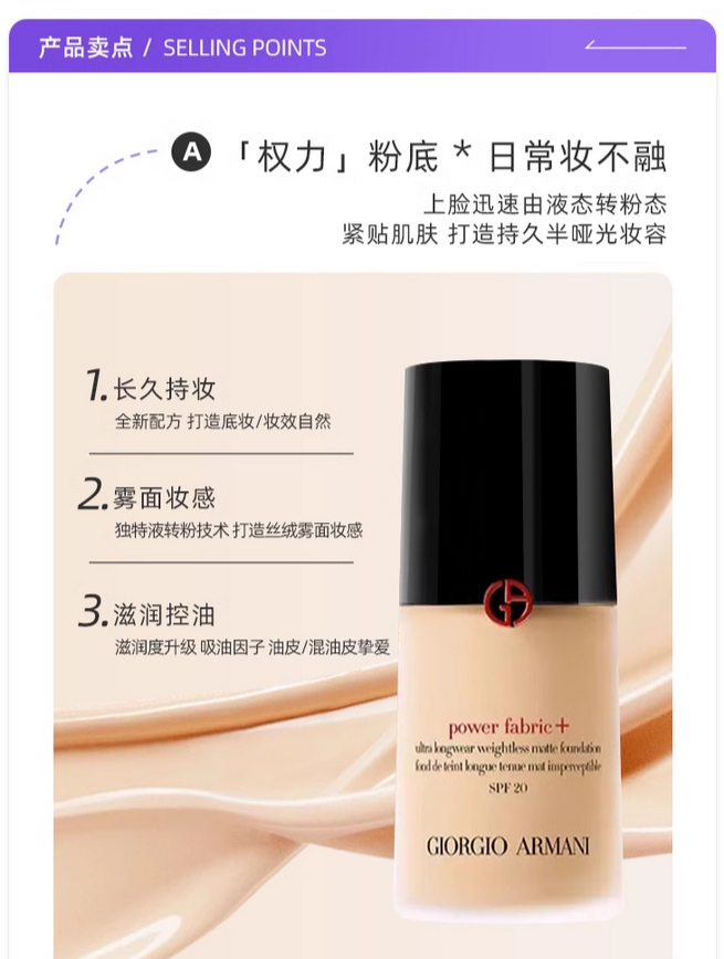 阿玛尼权力持妆PLUS粉底液权利持久的描述