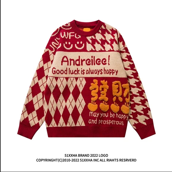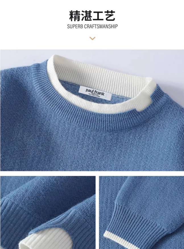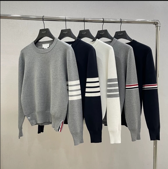 秋冬新品TB纯棉针织四杠圆领毛衣男女潮流袖标彩条套头上衣打底衫