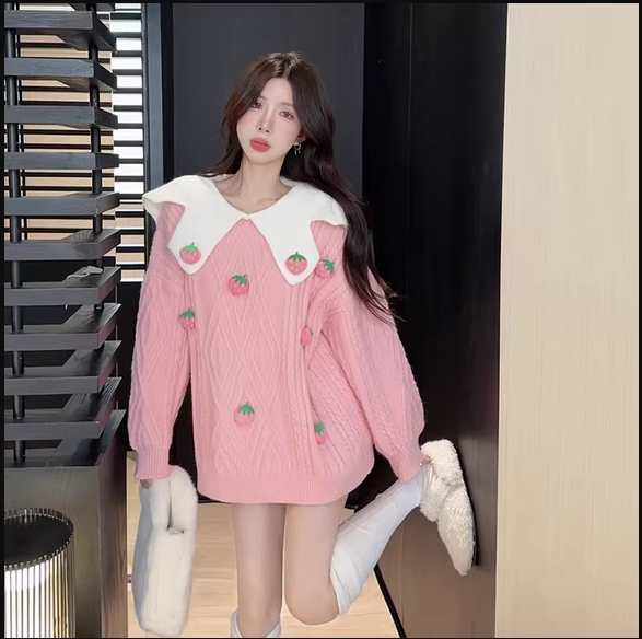 秋冬甜美减龄可爱立体宽松娃娃领设计感慵懒风针织套头毛衣女长袖
