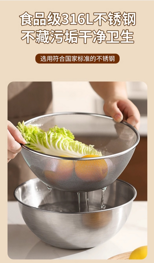 沥水篮316不锈钢洗菜盆洗米筛淘米盆厨房洗水果漏盆滤水淘米神器